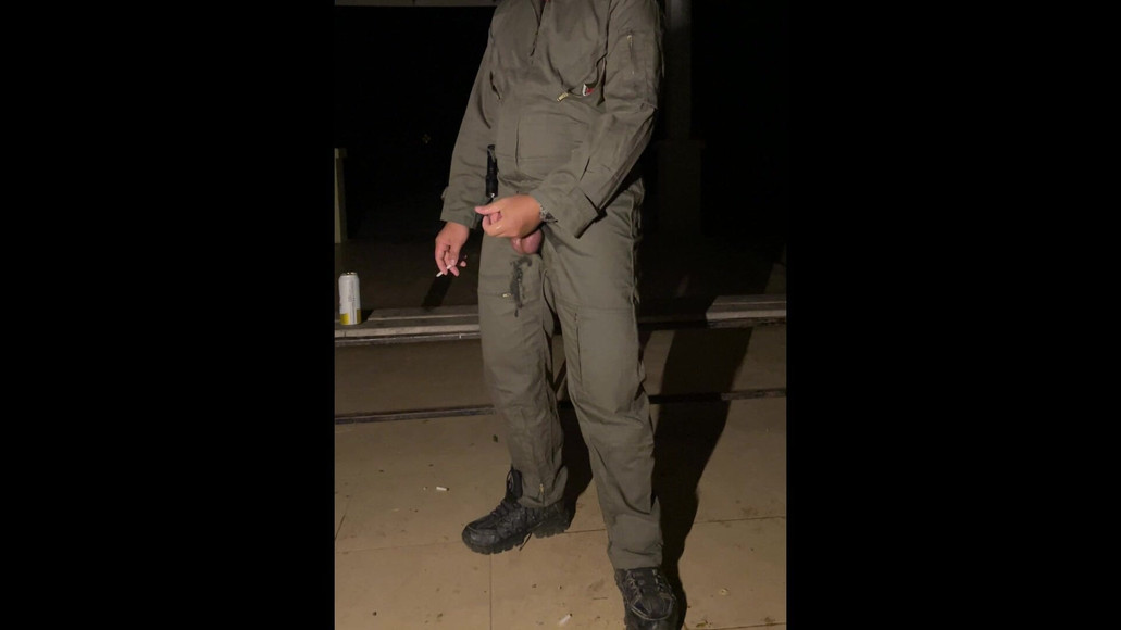 After work is done decide to jerk off in my mechanic jumpsuit and shoot a creamy load - wet with precum lube