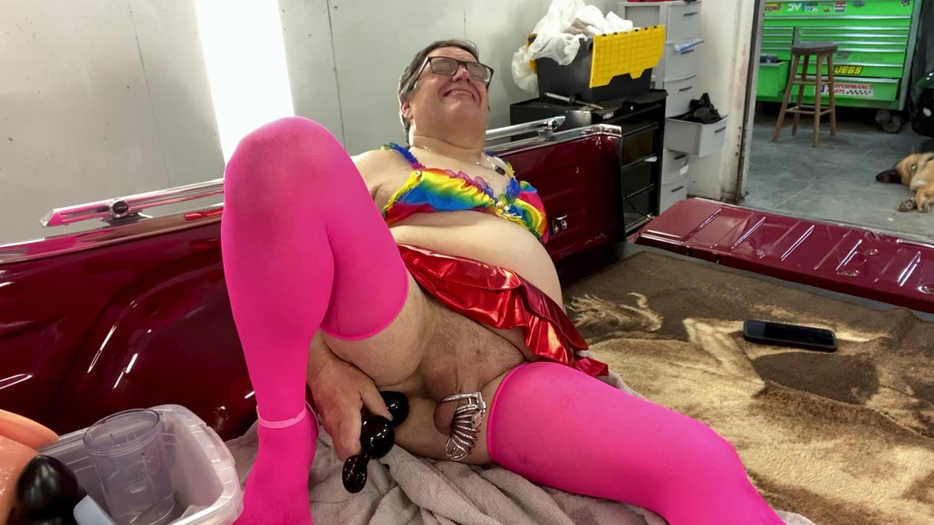 Ball Chain, Kong Dong Deep Fisting my Hole wearing Pink Stockings Pink Heels and Mini Skirt Also First Time with Chastity Cage!!!