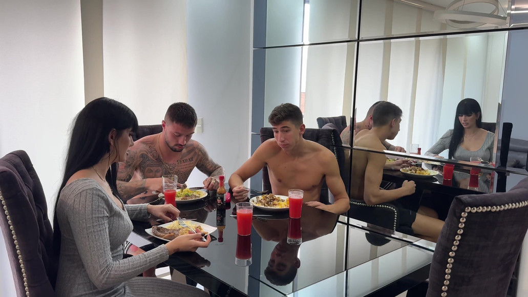 Bradybud: Büyük götlü Latin kadın, kocası evde yokken iki yabancıyı sikiyor